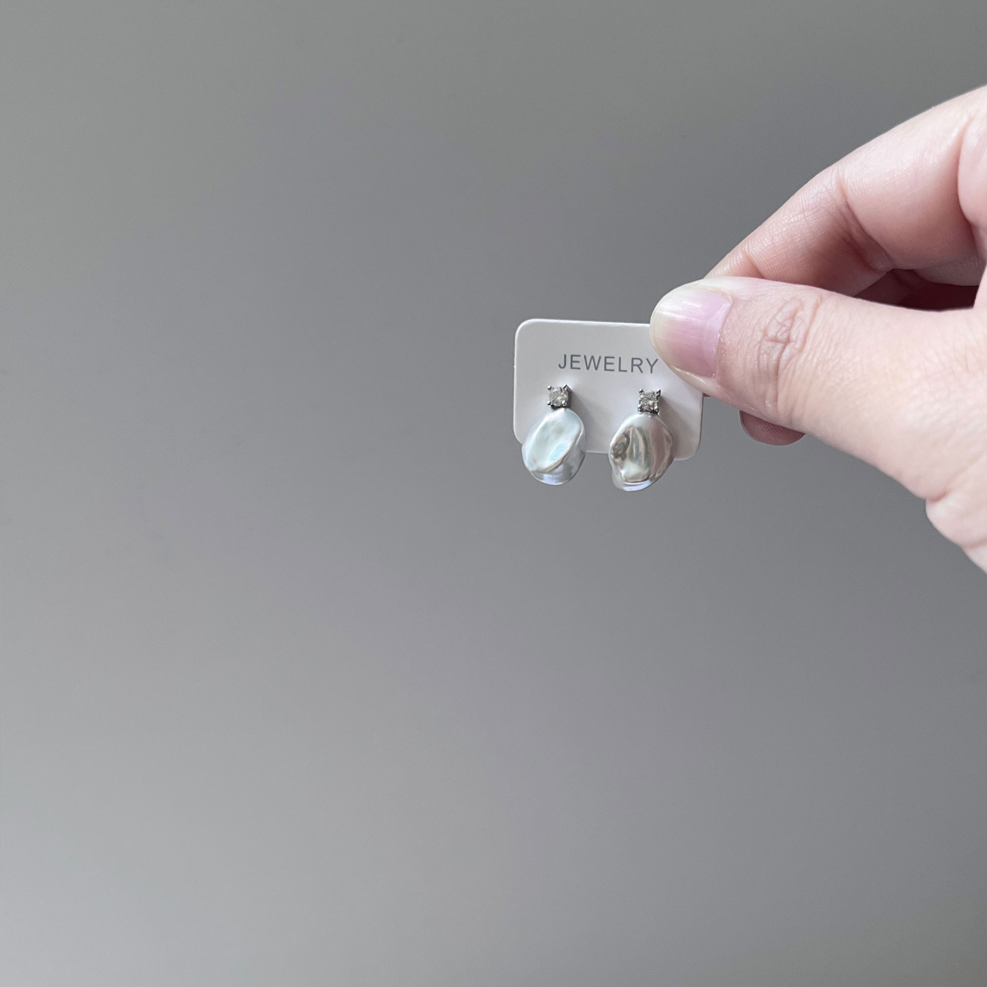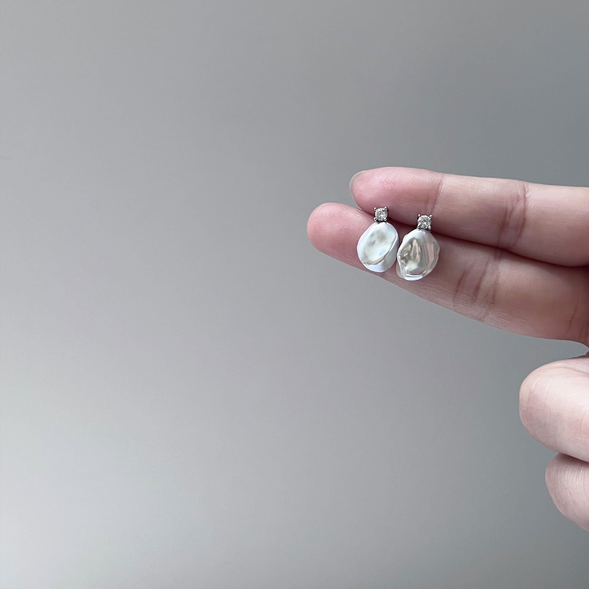[KESHI] Freshwater Pearl Stud Earrings (Keshi 9-10mm)