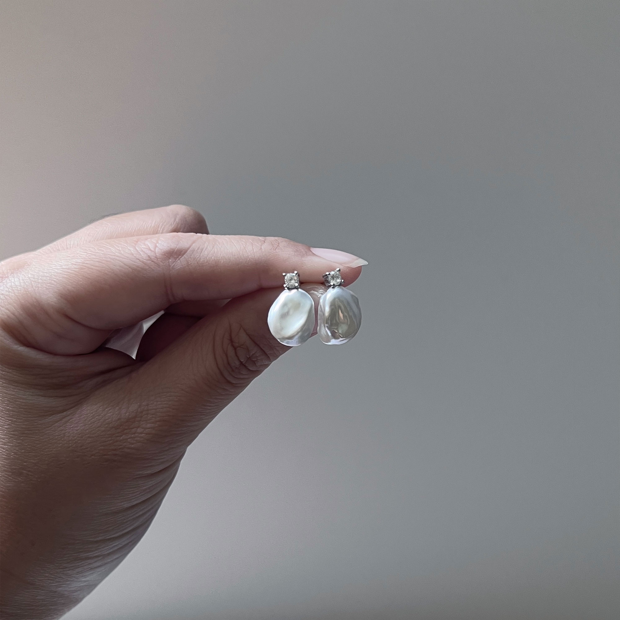[BLOOM] Freshwater Pearl Earrings (Keshi 8-9mm)