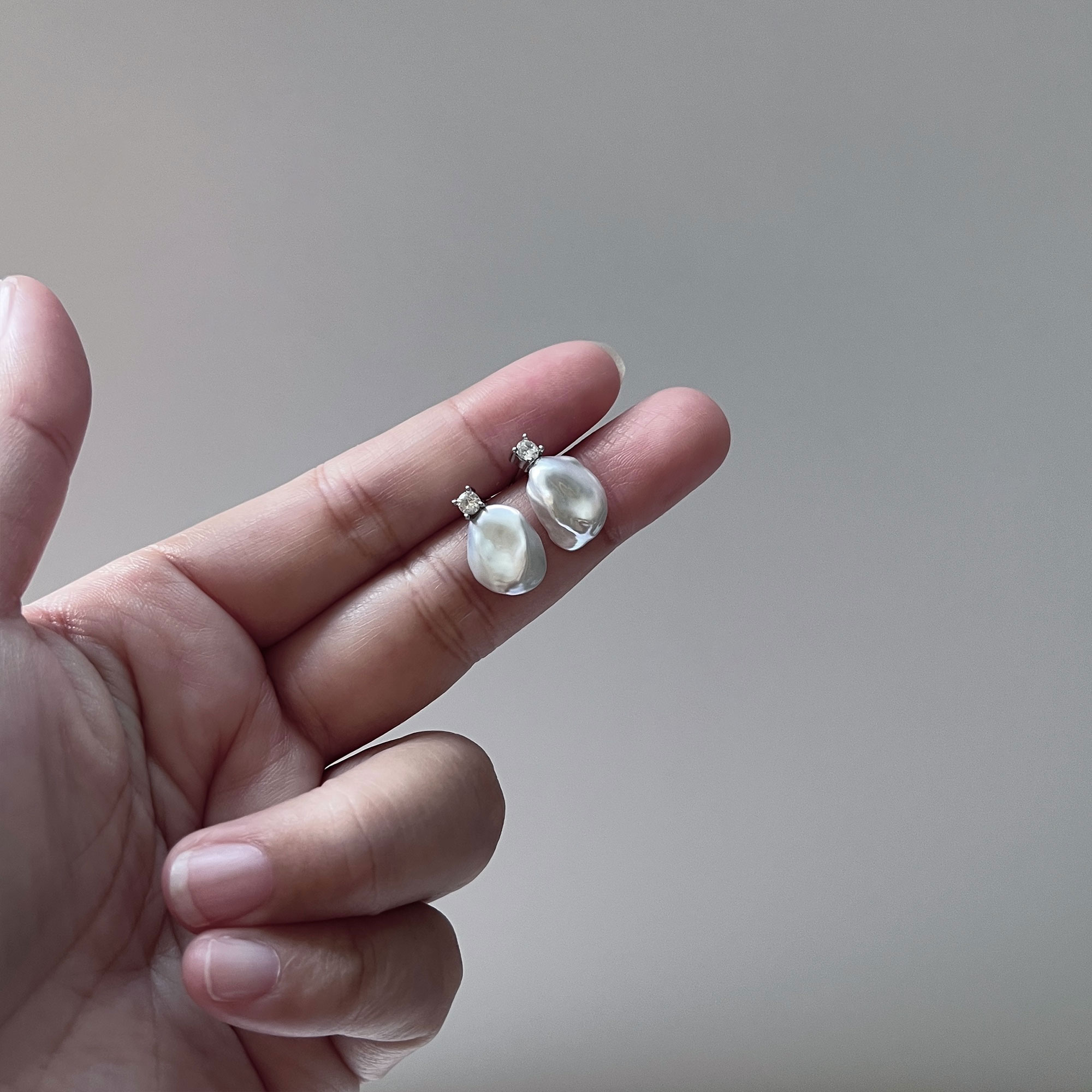 Home » Shop » [ARIANA] Freshwater Pearl Earrings (Keshi 9x11mm)