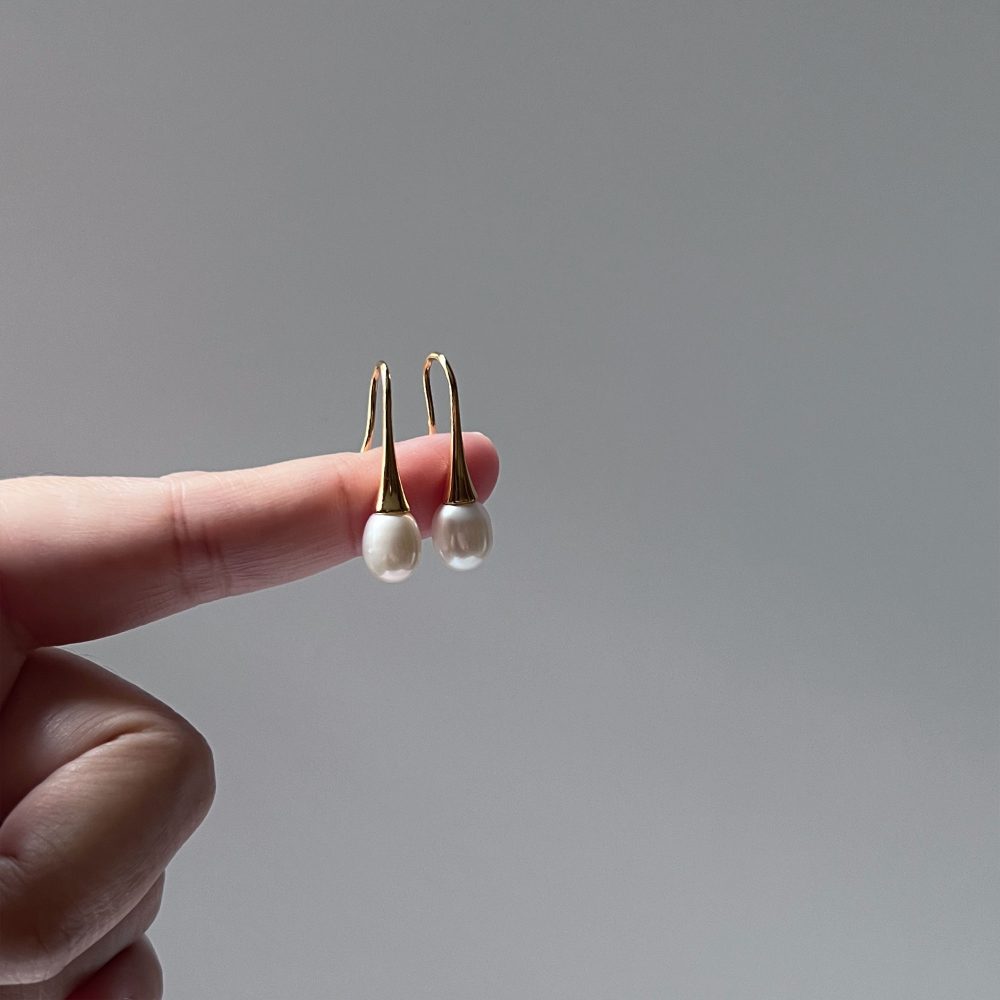 Home » Shop » [EVELYN] Freshwater Pearl Drop Earrings (Rice 7-8mm)