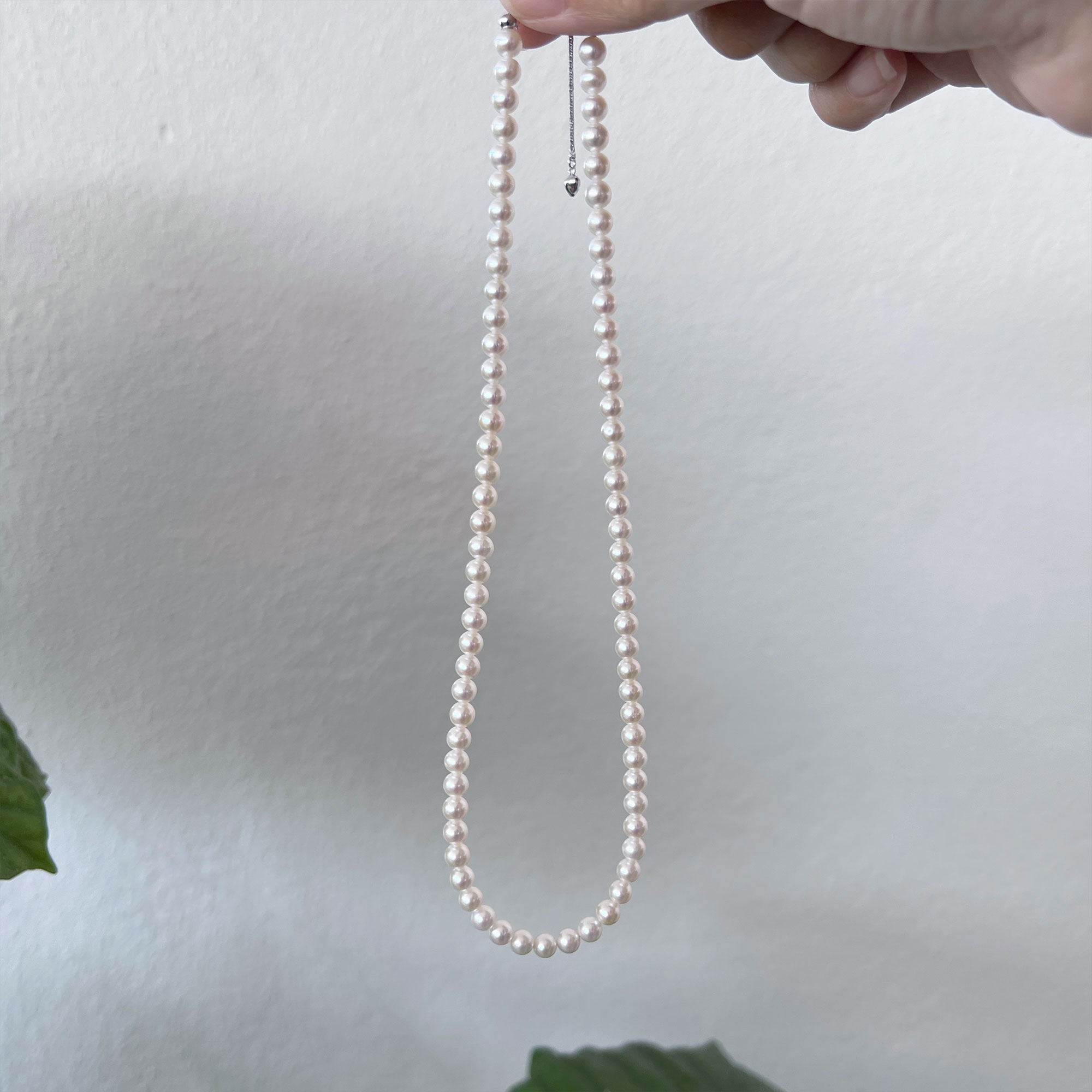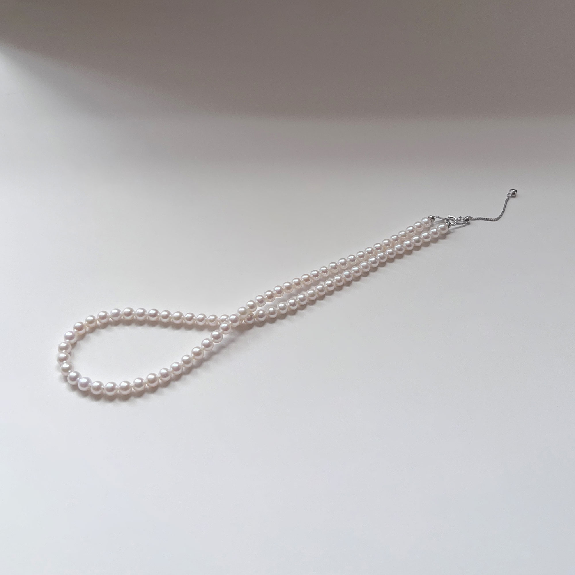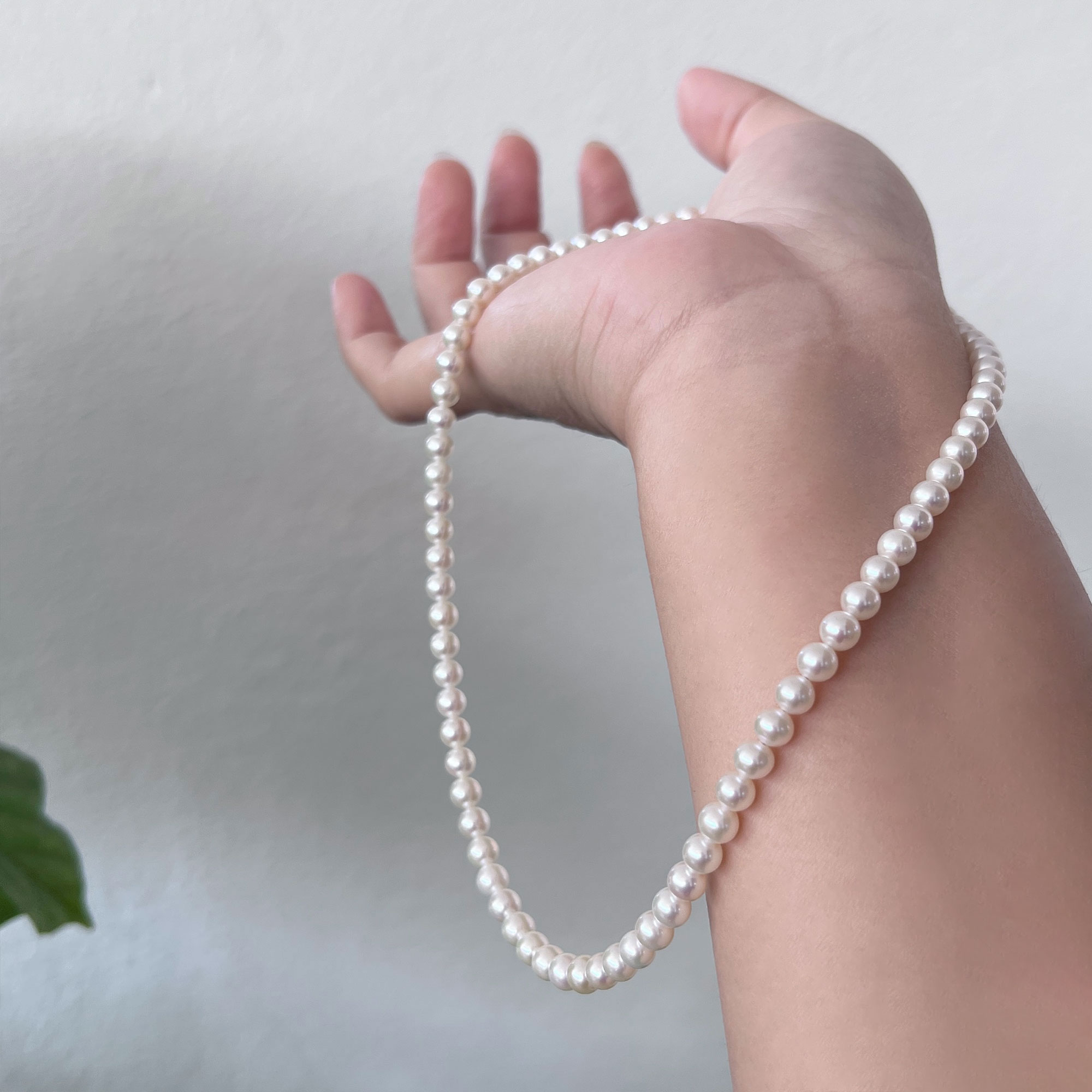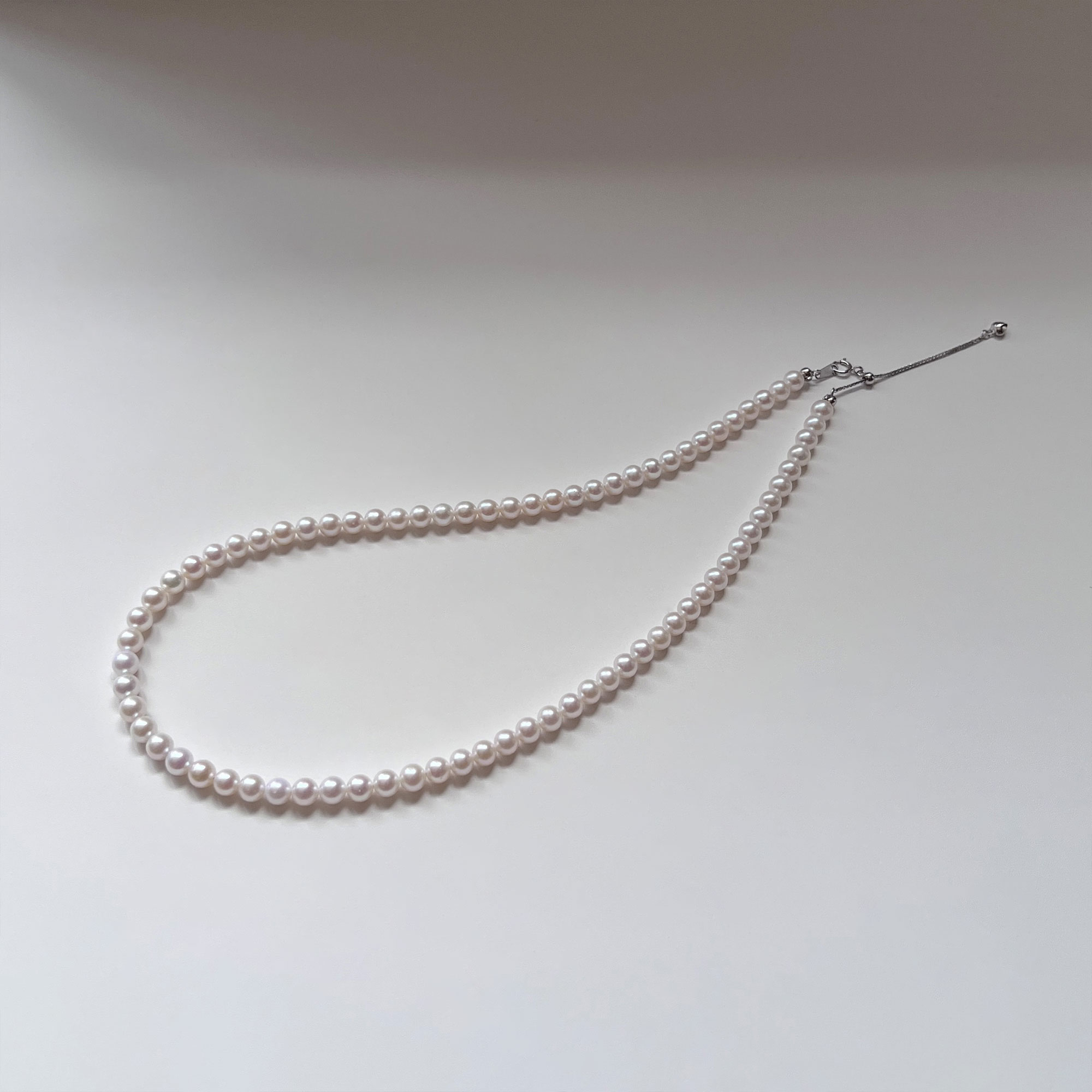 A timeless essential with a soft, elegant glow. This necklace features carefully selected freshwater pearls in a warm white to light cream tone, offering a gentle, flattering radiance against the skin. The luster is luminous yet refined, perfect for both everyday wear and special occasions.
