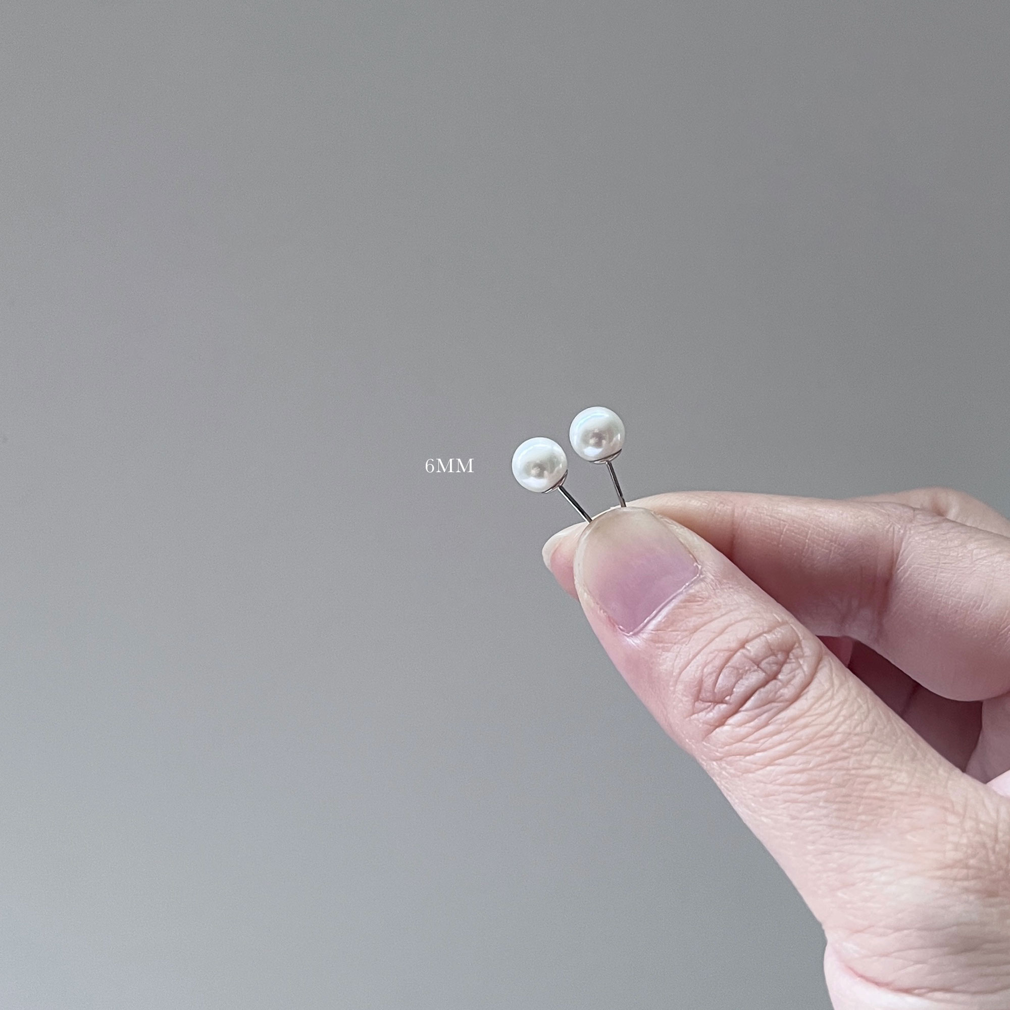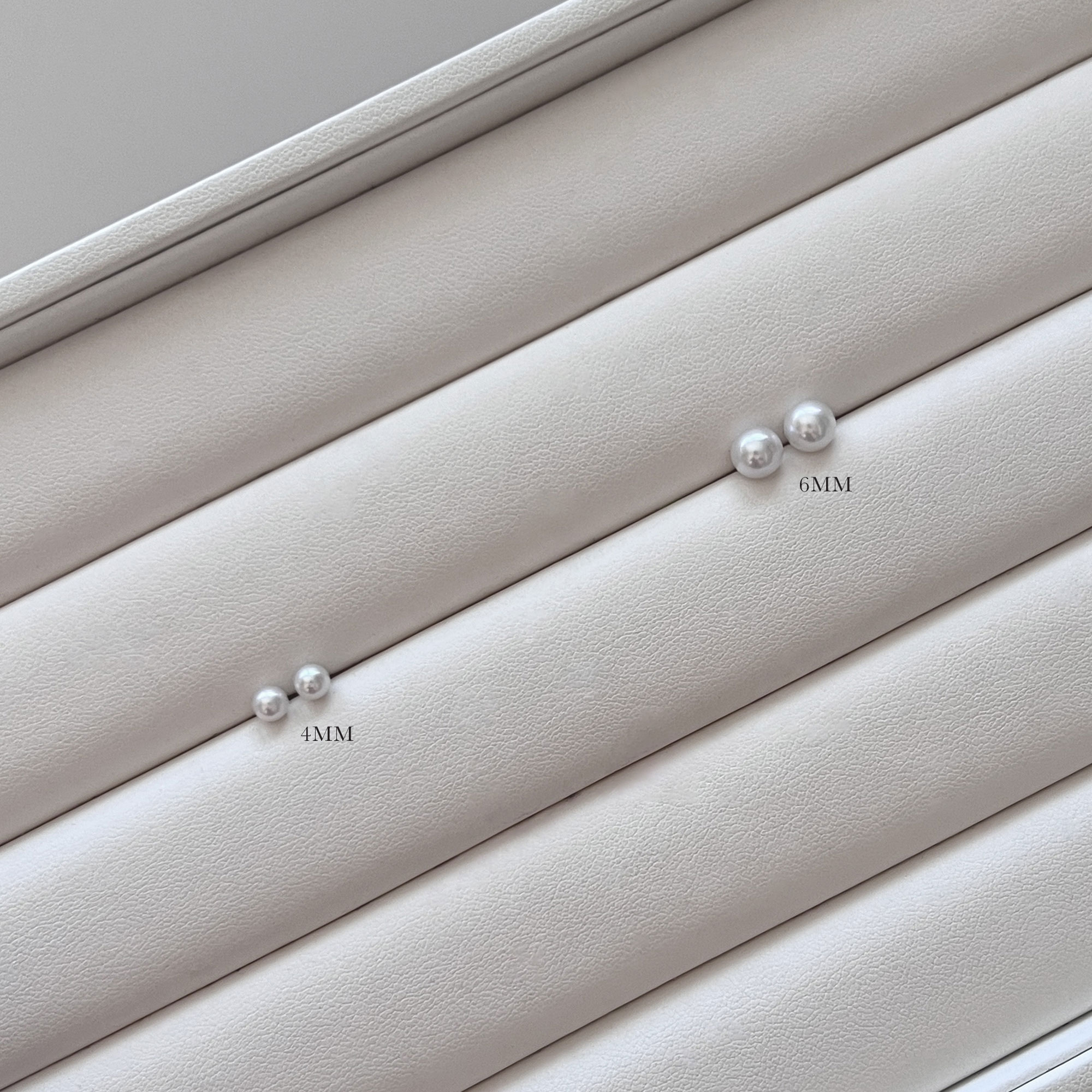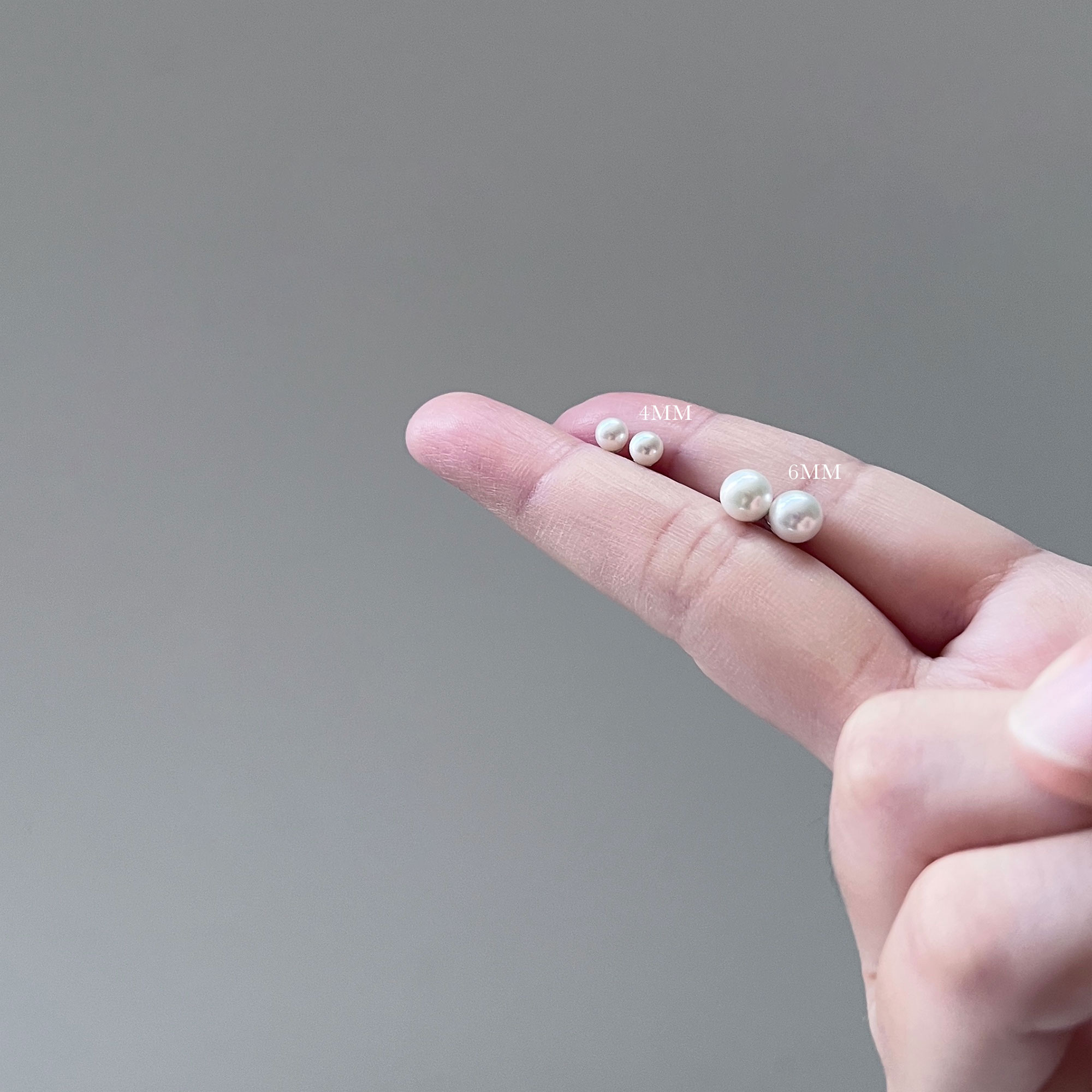 [MOON] Freshwater Pearl Stud Earrings (Round 4mm & 6mm)