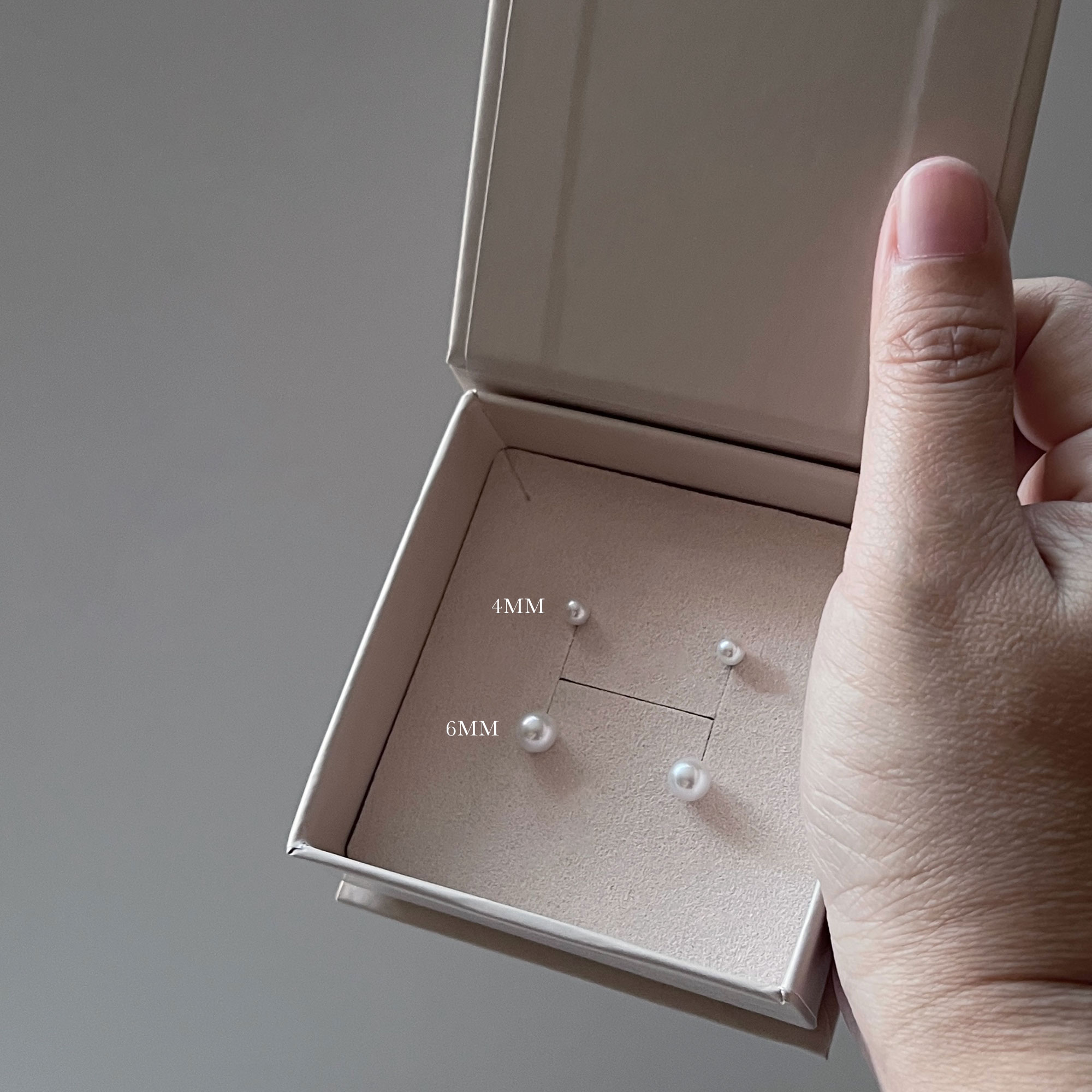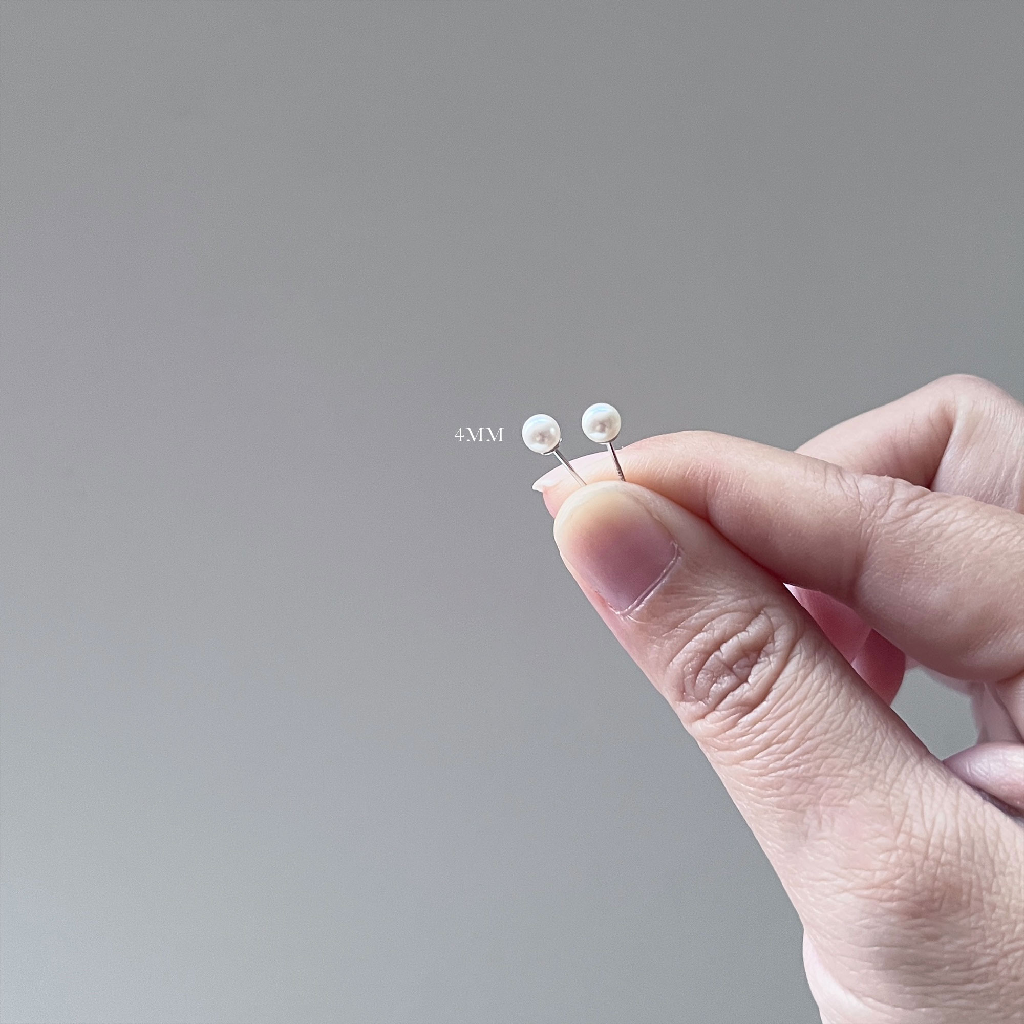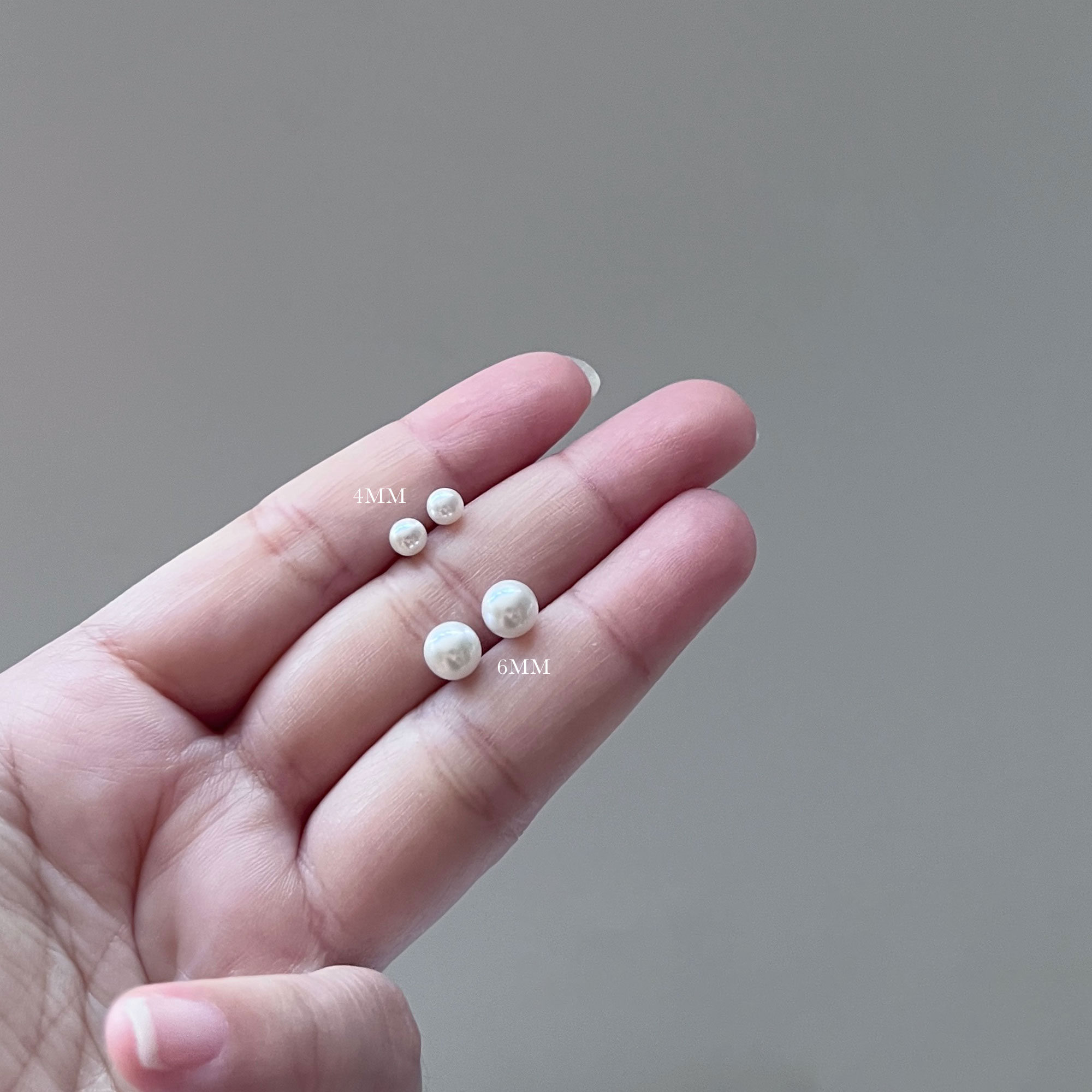 [MOON] Freshwater Pearl Stud Earrings (Round 4mm & 6mm)