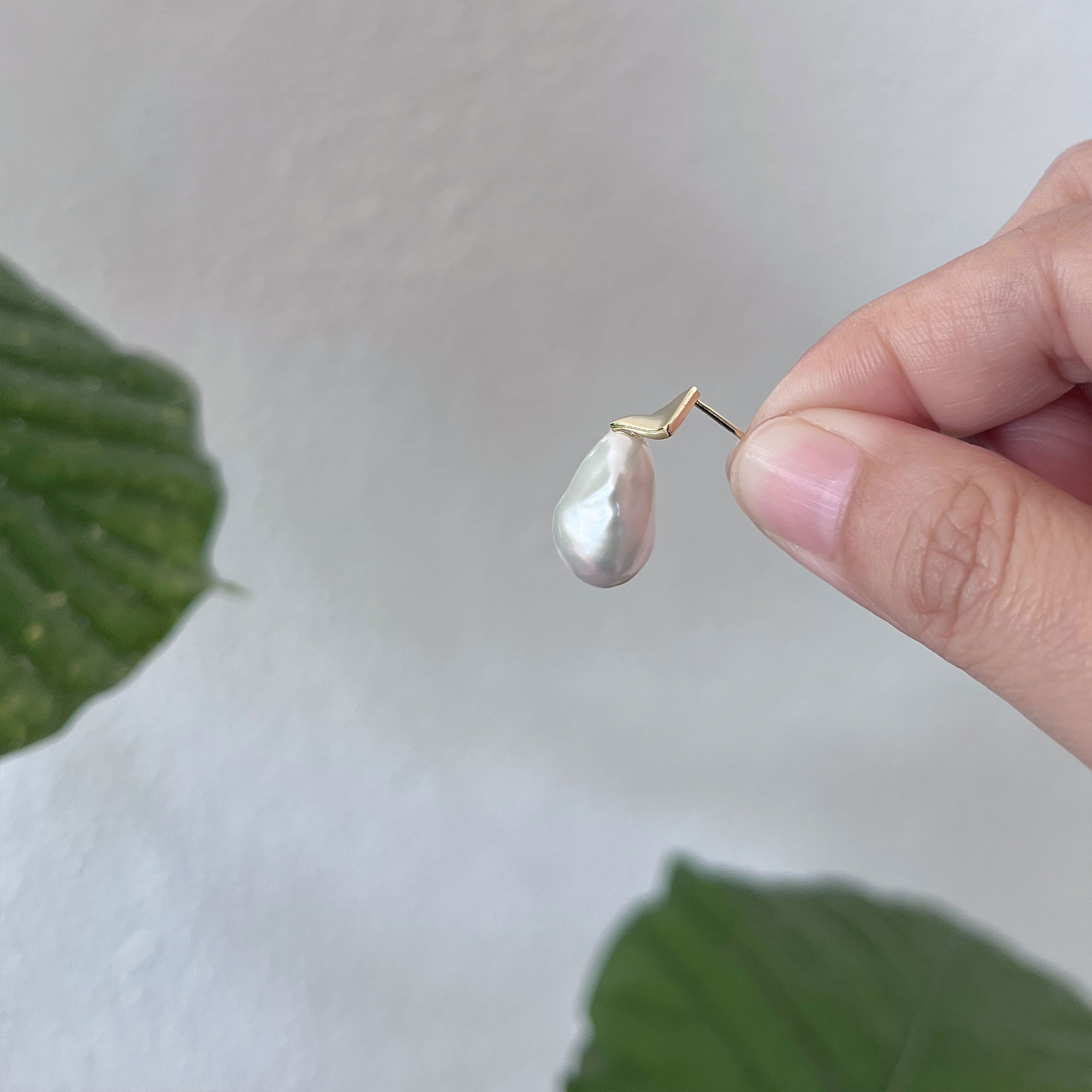 [NESSA] Freshwater Pearl Earrings (Baroque 10x17mm)