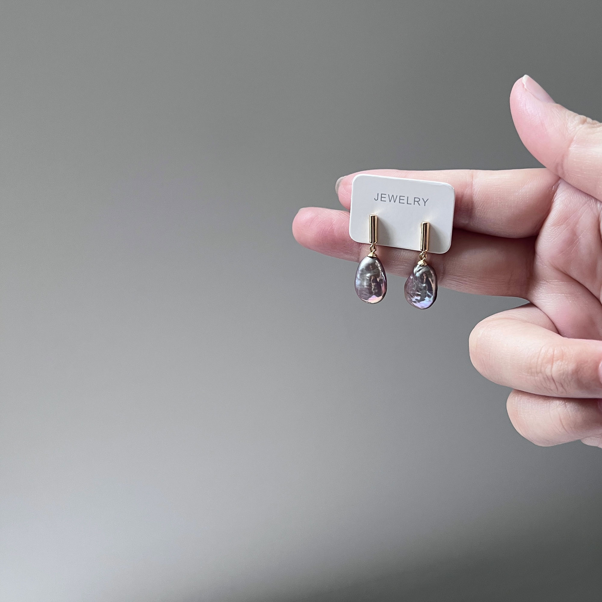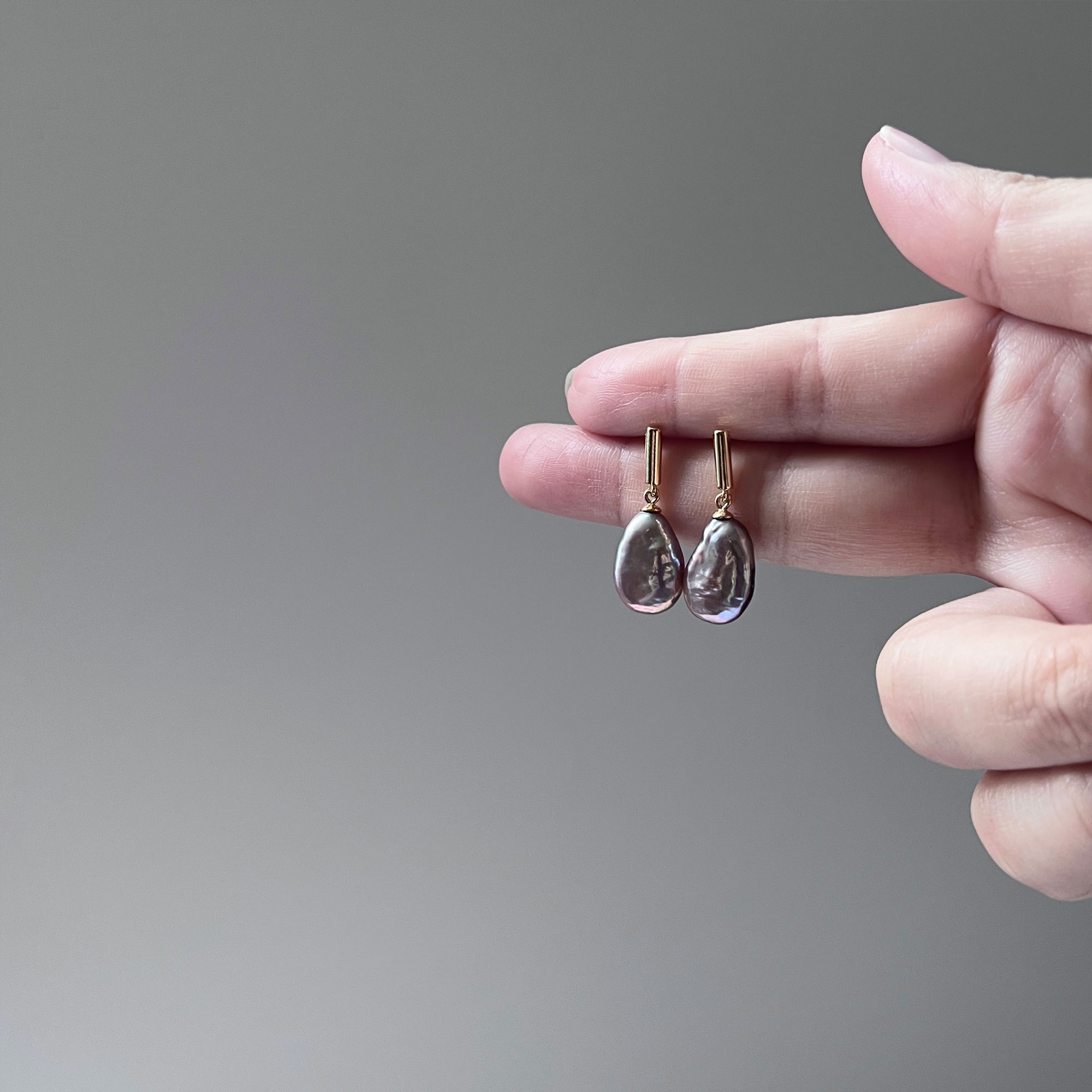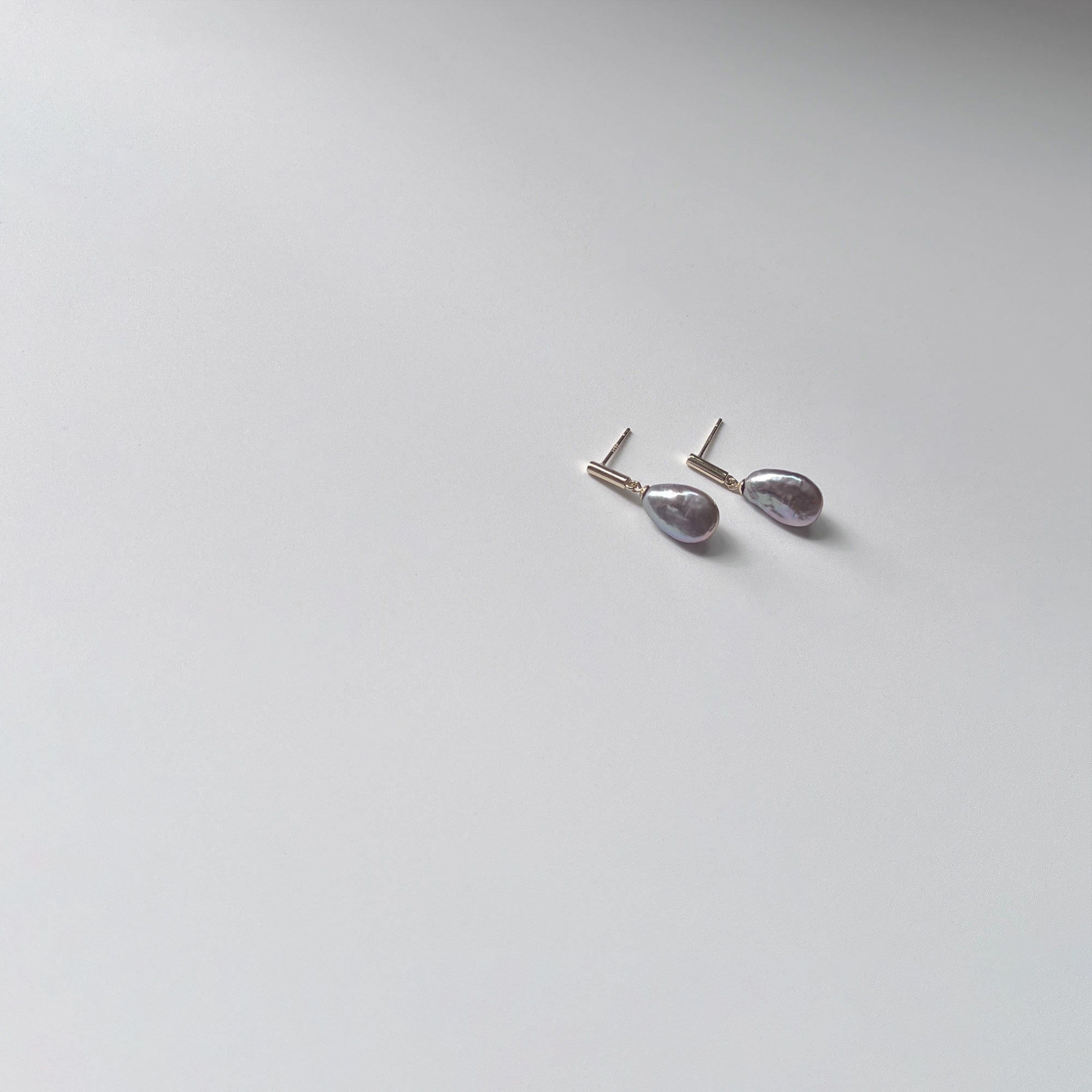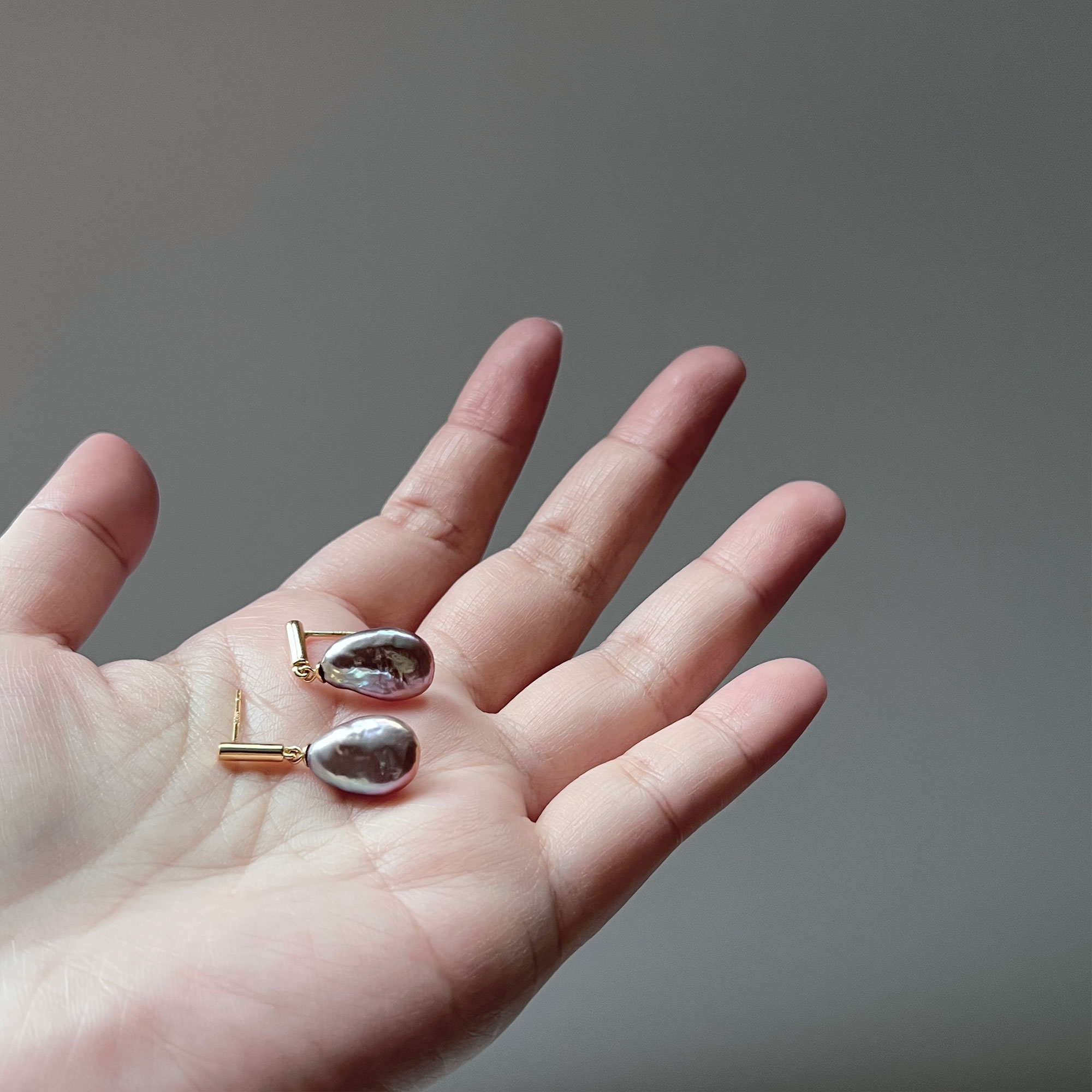 [PLUM] Freshwater Pearl Earrings (Keshi 10x15mm)