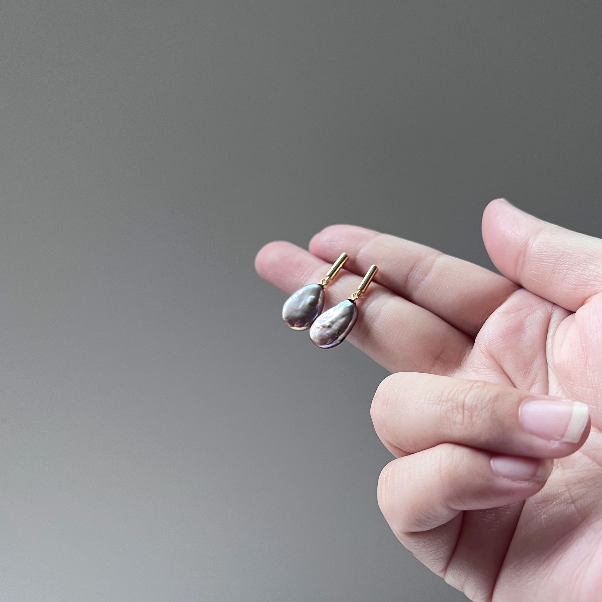 Home » Shop » [PLUM] Freshwater Pearl Earrings (Keshi 10x15mm)