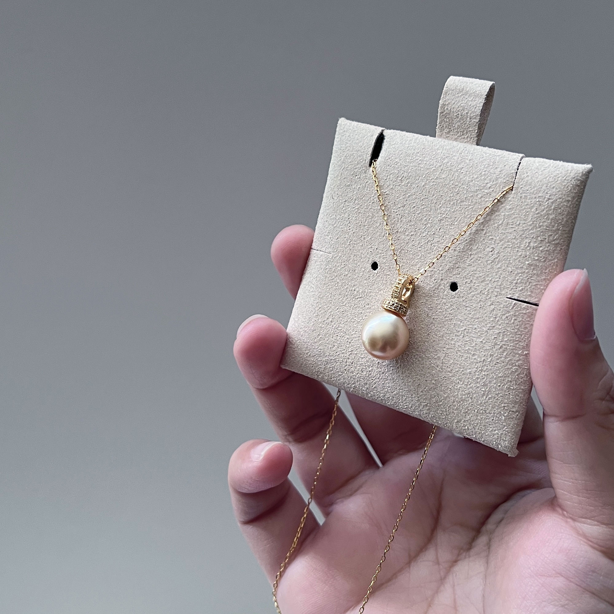Slight imperfections are to be expected in the pearls used on each hand-made piece, such as blemishes or scratches. But that is the charm of natural materials. It’s not a defect, but a mark of authenticity.