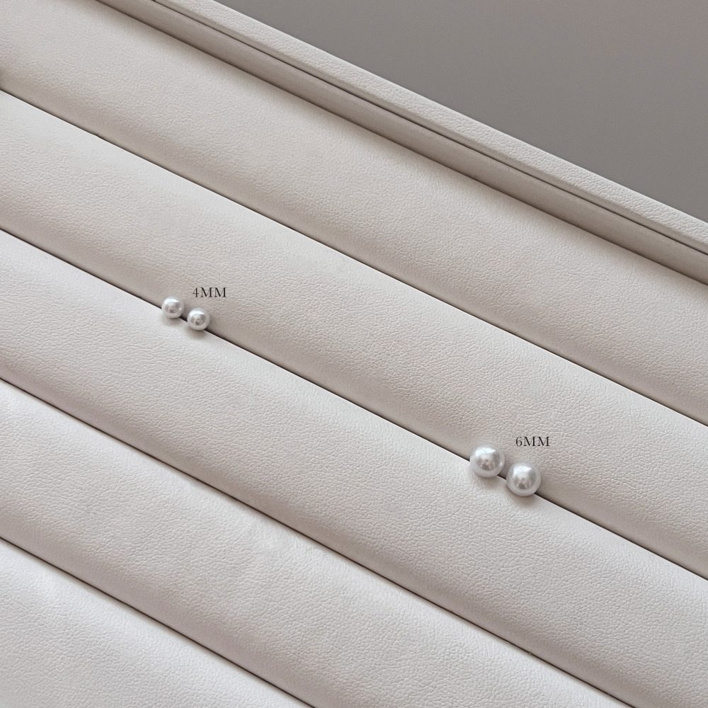 [MOON] Freshwater Pearl Stud Earrings (Round 4mm & 6mm)